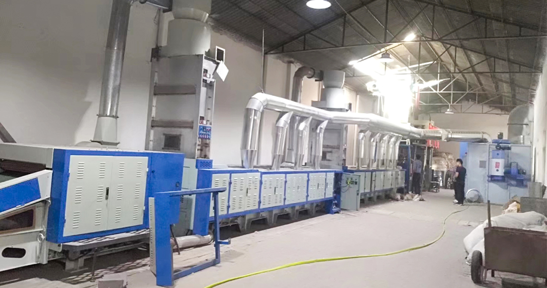 各種纖維原料的開松質(zhì)量主要決定于工藝,對不同的原料應(yīng)采用不同的工藝原則。例如棉紡中加工原棉時,采用先松后打、多松少返、合理打擊、早落少碎的工藝原則。加工化學(xué)短纖維或中長纖維時,由于化纖原料較蓬松,不含雜質(zhì),僅含少量的纖維疵點(diǎn),所以采用多梳少打、少排除多回收的工藝原則。按照原則組合開清棉機(jī)械和配置工藝。對包裝過緊、含水或含雜過多的原料,一般應(yīng)經(jīng)過預(yù)處理。緊包原料應(yīng)進(jìn)行預(yù)開松,或先行拆包給予充分時間自然松解;含水過多的原料,在開松前應(yīng)進(jìn)行烘干,以提高原料的開松效果。