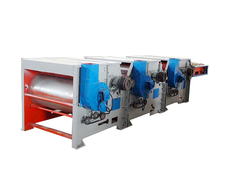 主要是松解纖維、棉、紡織品等材質(zhì),通過(guò)撕扯使大塊的糾結(jié)纖維松解變成小塊或束狀,同時(shí)在松解過(guò)程中伴有混和、除雜作用。開(kāi)松機(jī)一般是由一對(duì)喂入輥或喂入羅拉及一個(gè)開(kāi)松錫林組成,開(kāi)松錫林上裝有角釘或梳針或針布或豪豬打手,為開(kāi)松更完全,有的還在錫林上裝有工作輥及剝?nèi)≥仭2煌慕Y(jié)構(gòu)使其開(kāi)松效果、混合效果、除雜效果有明顯的差異,因此在不同要求的生產(chǎn)線上應(yīng)采用不同形式的開(kāi)松機(jī)。也可根據(jù)加工的原料選用開(kāi)松機(jī),開(kāi)松后的纖維再喂入梳理機(jī)進(jìn)行加工。