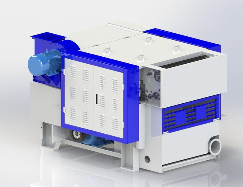 主要是松解纖維、棉、紡織品等材質(zhì),通過撕扯使大塊的糾結(jié)纖維松解變成小塊或束狀,同時(shí)在松解過程中伴有混和、除雜作用。開松機(jī)一般是由一對(duì)喂入輥或喂入羅拉及一個(gè)開松錫林組成,開松錫林上裝有角釘或梳針或針布或豪豬打手,為開松更完全,有的還在錫林上裝有工作輥及剝?nèi)≥仭2煌慕Y(jié)構(gòu)使其開松效果、混合效果、除雜效果有明顯的差異,因此在不同要求的生產(chǎn)線上應(yīng)采用不同形式的開松機(jī)。也可根據(jù)加工的原料選用開松機(jī),開松后的纖維再喂入梳理機(jī)進(jìn)行加工。